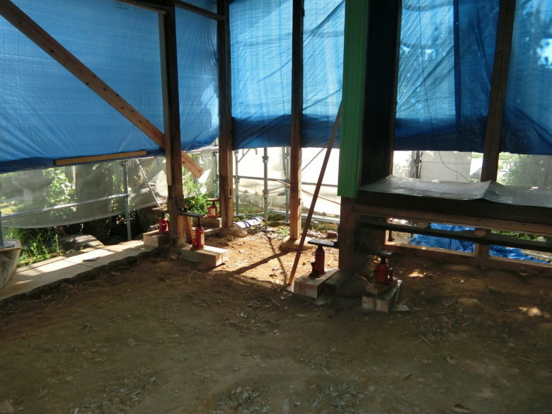 長さがそれぞれだった独立柱は切り揃えられ新たな土台が入り