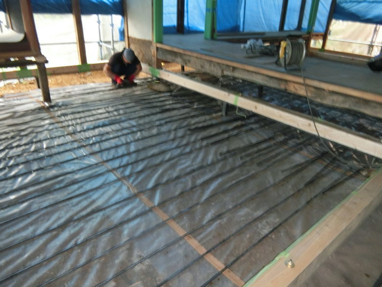 ベタ基礎の鉄筋が入り、外周の型枠が建て込まれるといよいよ