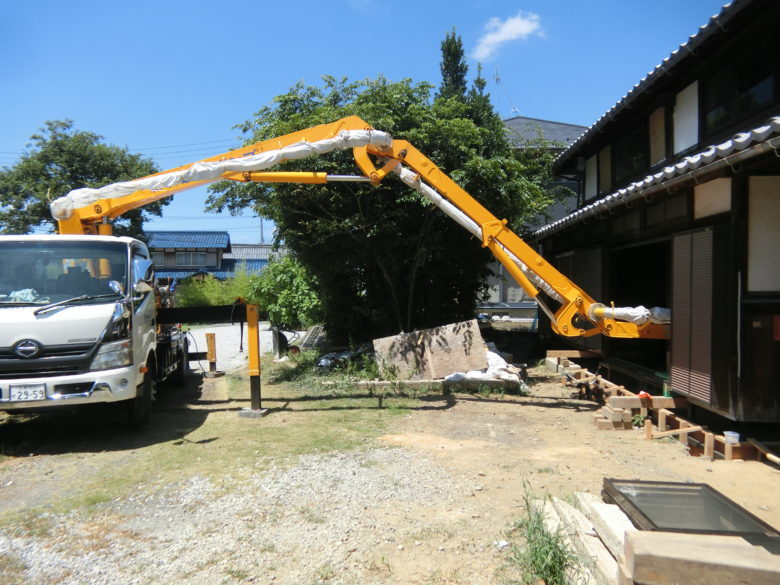 コンクリートは合計13㎥で圧送ポンプ車によって打設します。