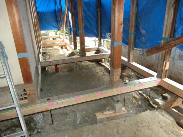 建物も土台を取り換えると一気に若返っていきます。この光景を何度見ても