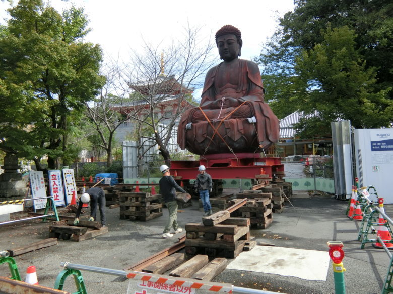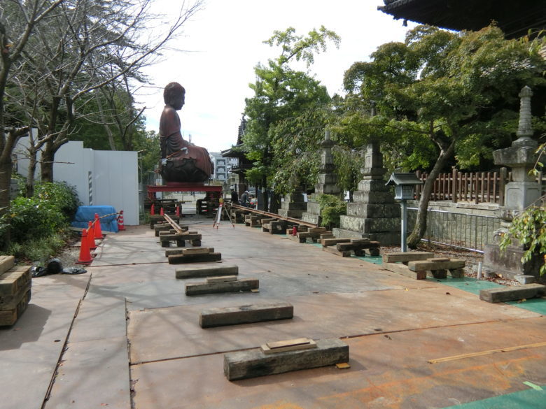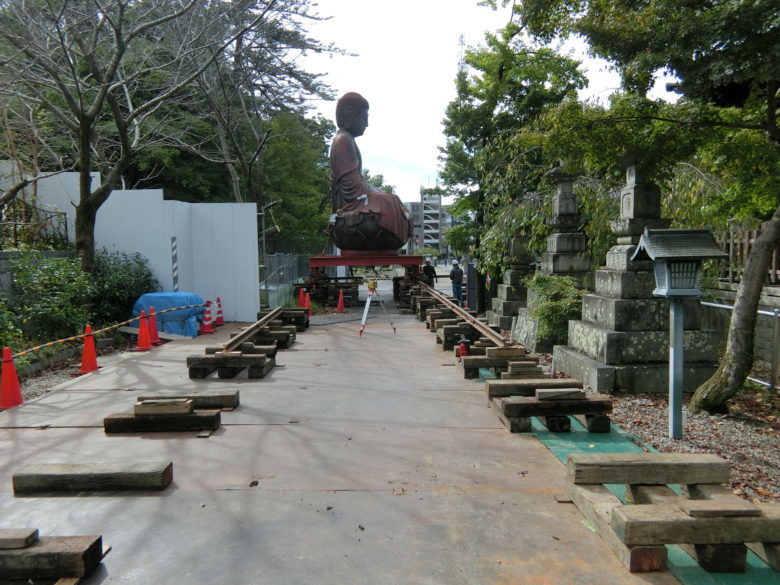 今回は建物じゃなく工作物(大仏様です)も曳家出来る
