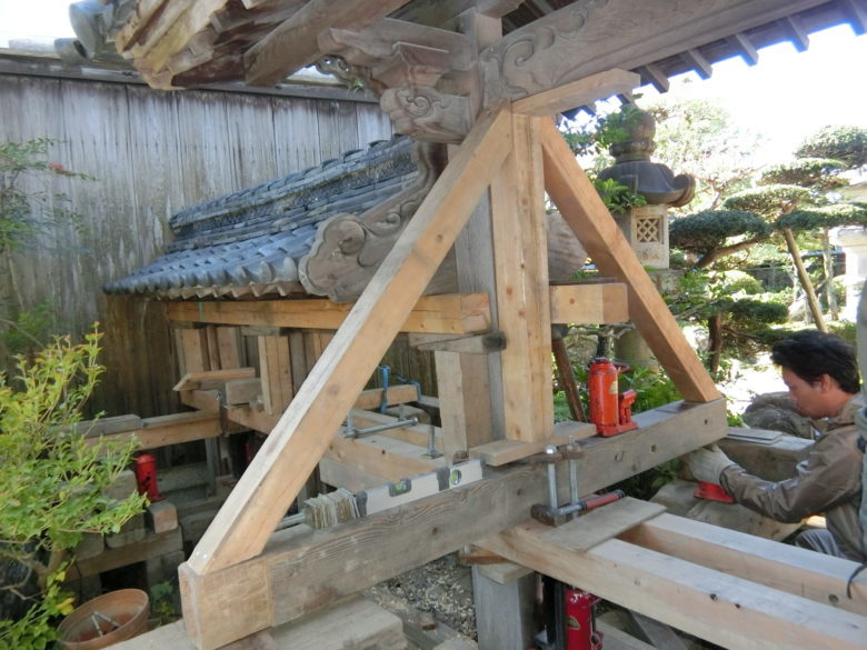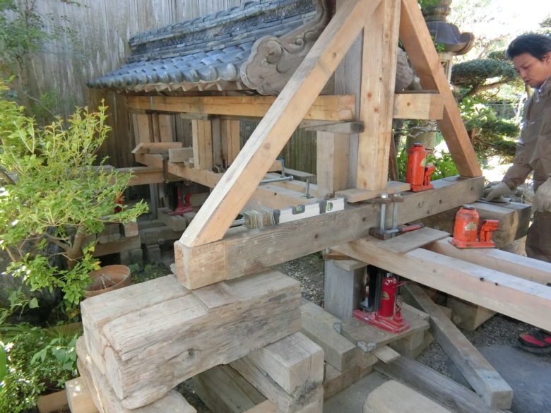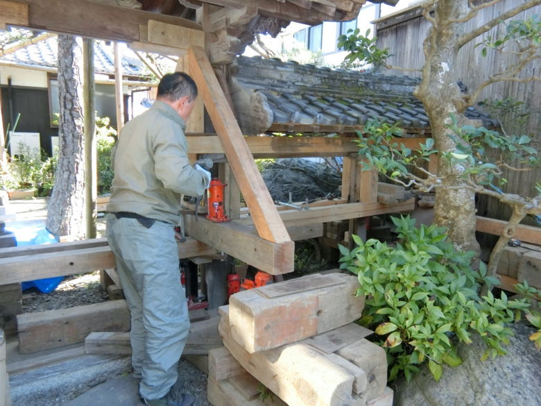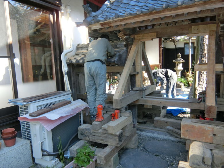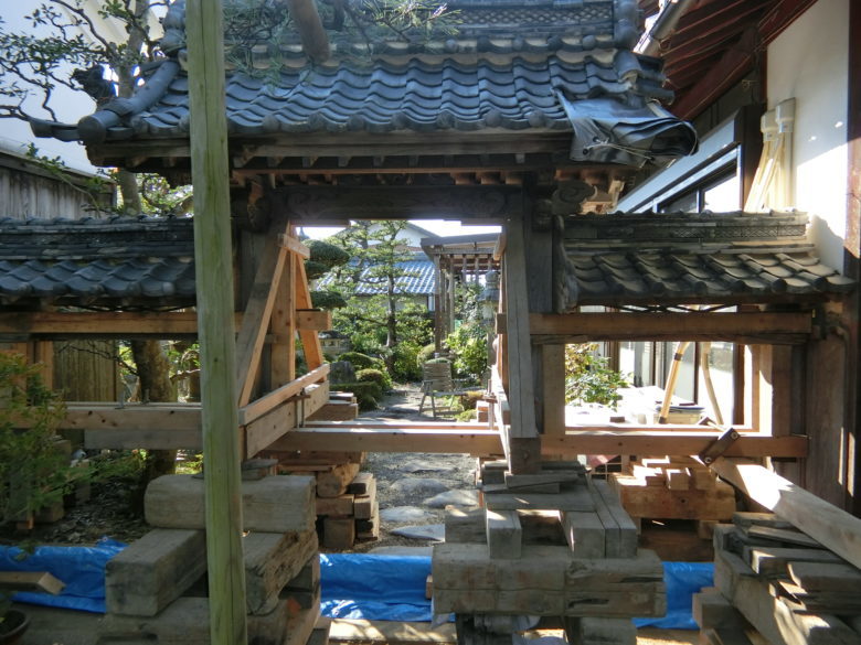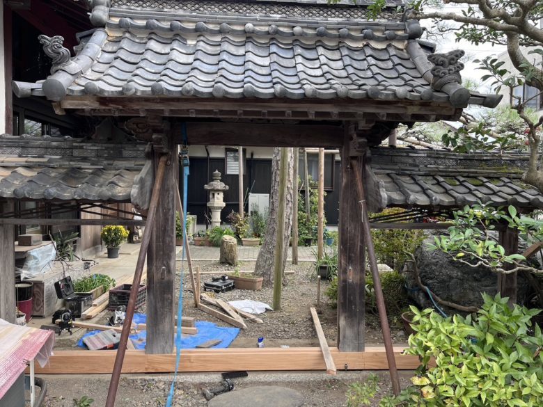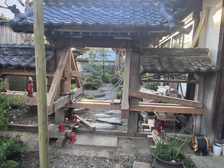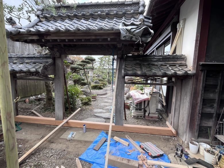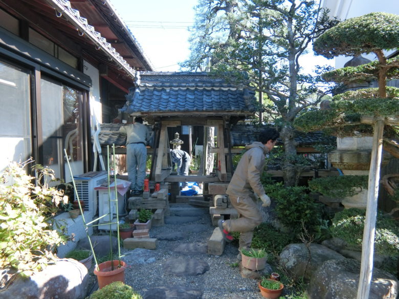 滋賀県長浜市「庭の木造門!嵩上げして土台新品!」