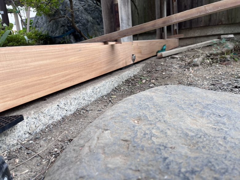 立派な土台が入り、一気に頑丈な庭門に様変わりしました。
