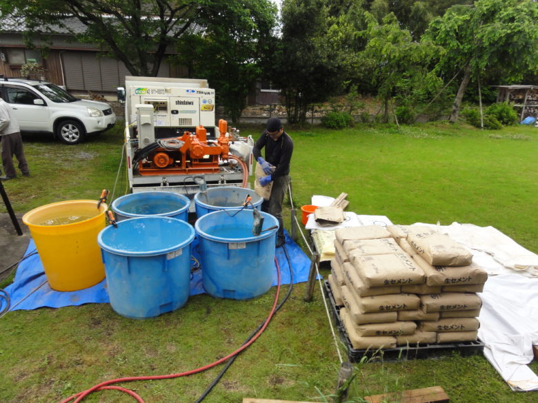 薬液注入補強・滋賀県愛荘町「地中を!薬液で固めよ!!」