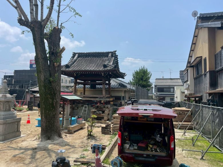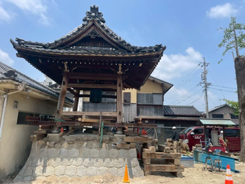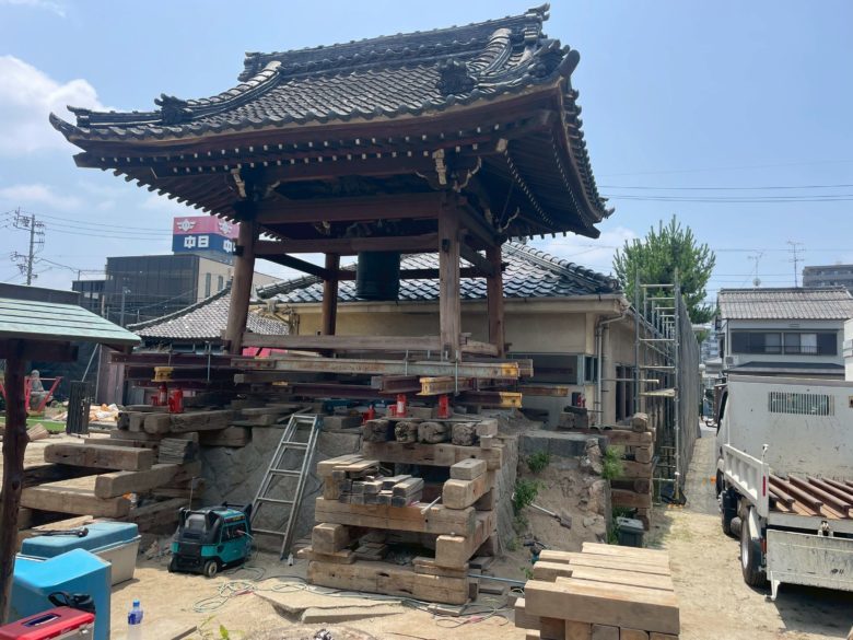 本日は田中荘介商会(名古屋市北区)様の現場で鐘楼を曳家