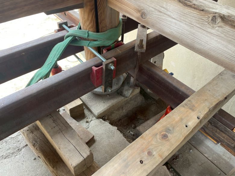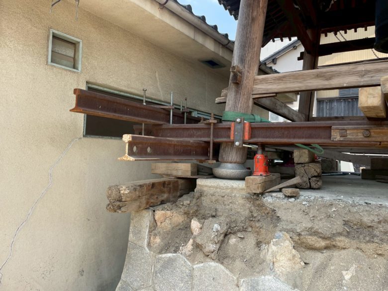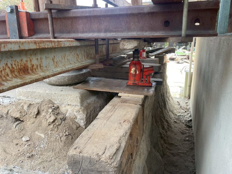 施工されており曳家の根がらみという準備に取り掛かります。
