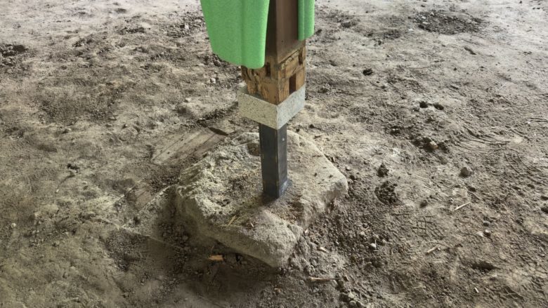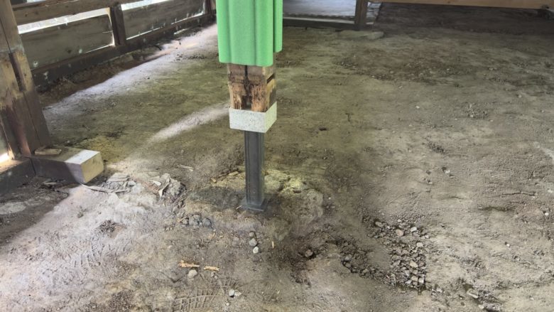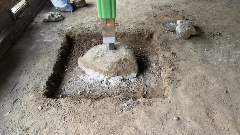 柱脚に腐食があり、根元を切上げて御影石を取り付けて基礎