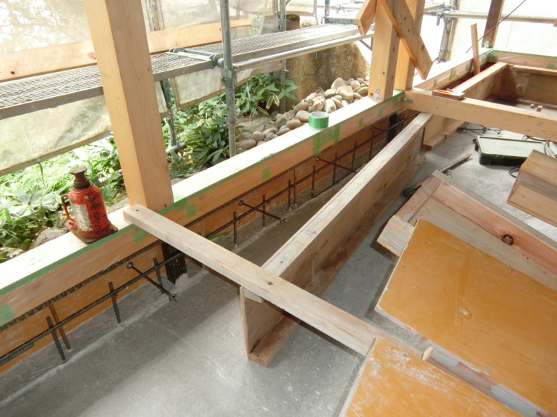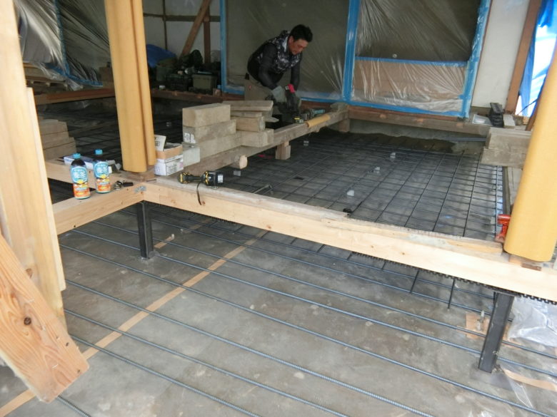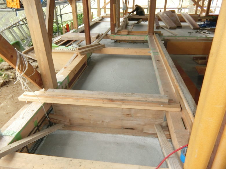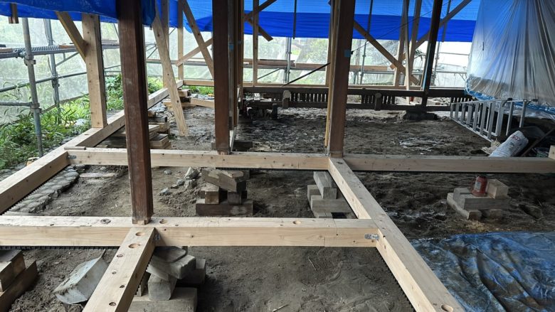 ほぼ地べたに土台がある状態が多く、今回も柱を切上げ。