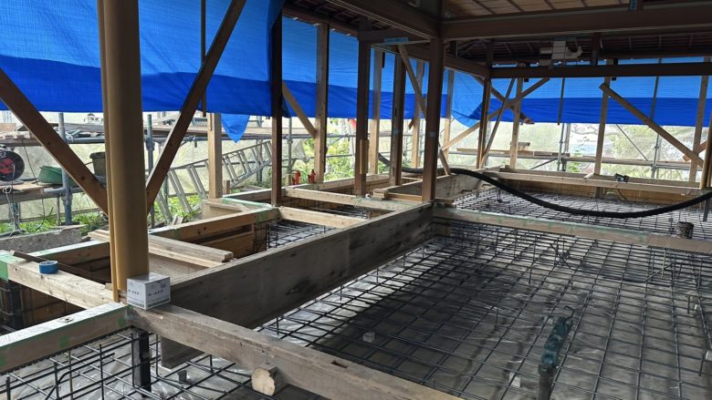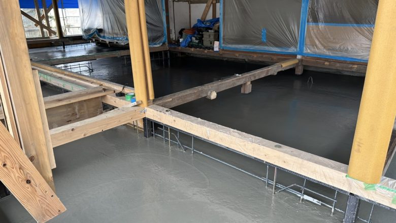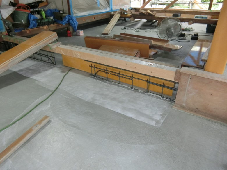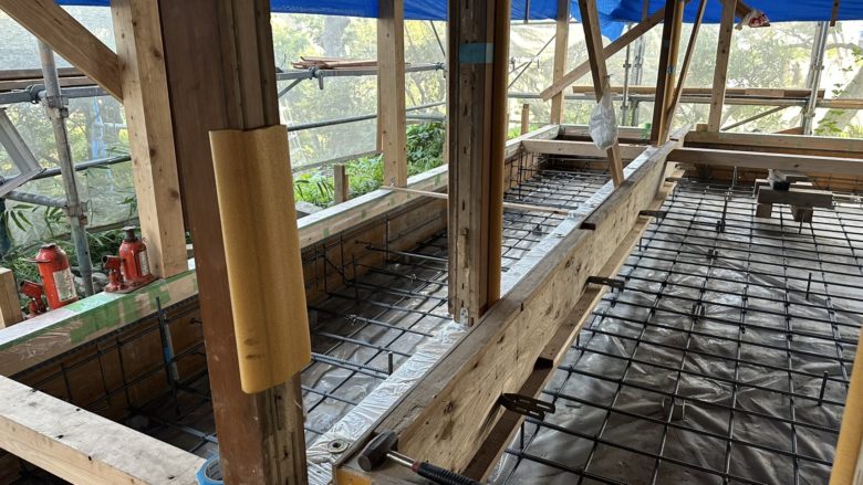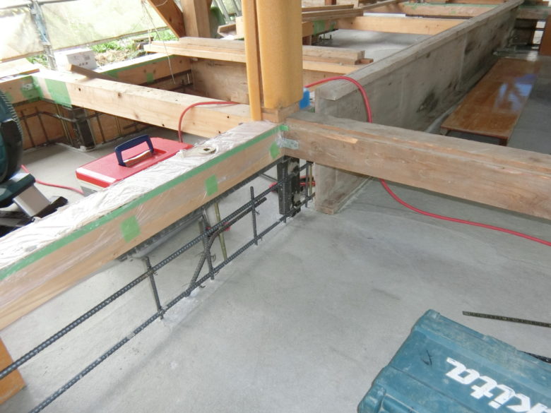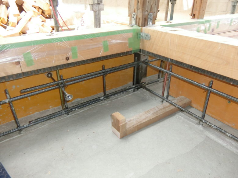 この柱脚の切上によって、立上りにコンクリート基礎ができ