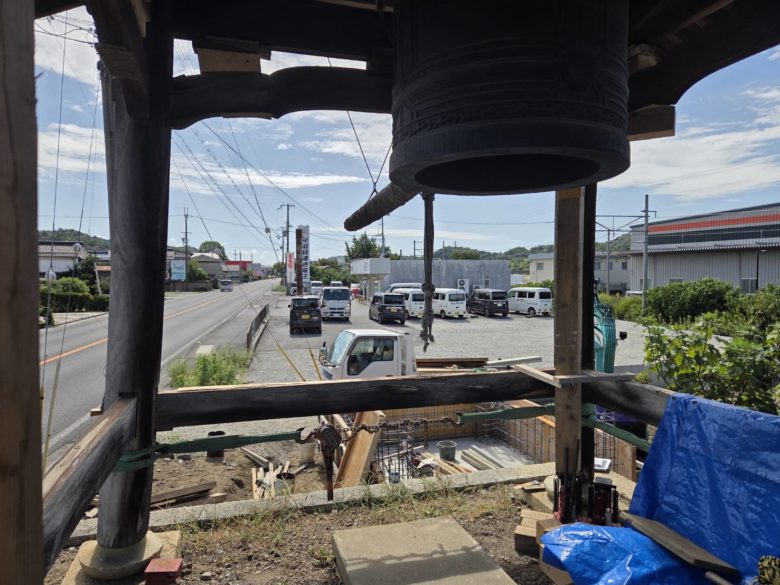 いやいやこの梵鐘が建物の重心を下げてくれる要なんです。
