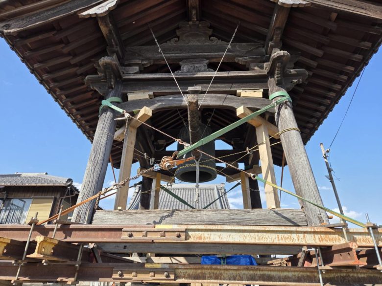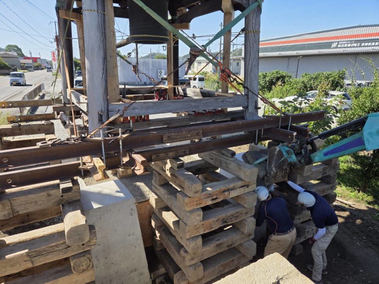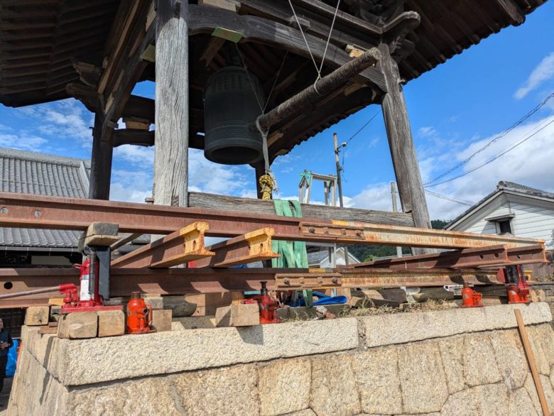 鐘楼の重心は「梵鐘」が重要です。この梵鐘を取り外して曳家