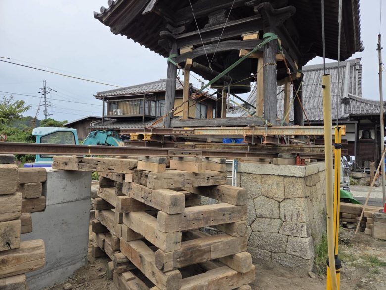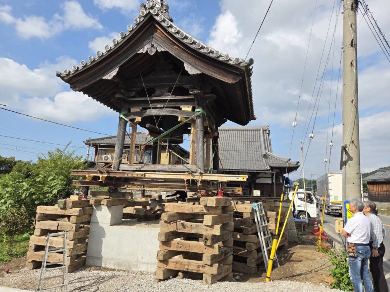 曳家・滋賀県米原市「鐘楼の曳家完了!ソロっと動く!」