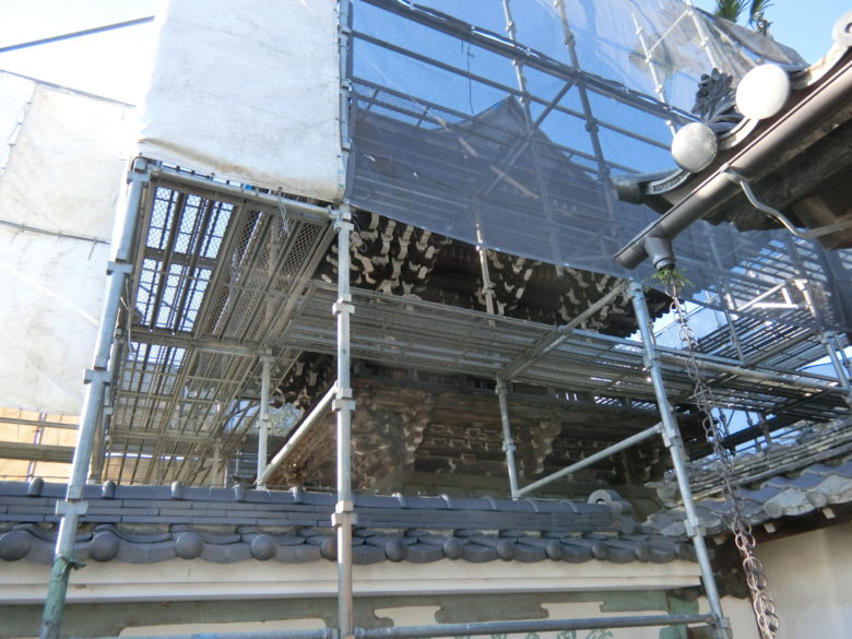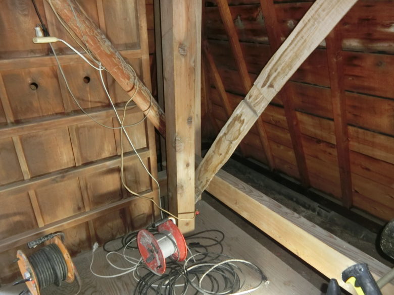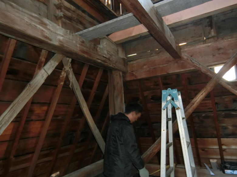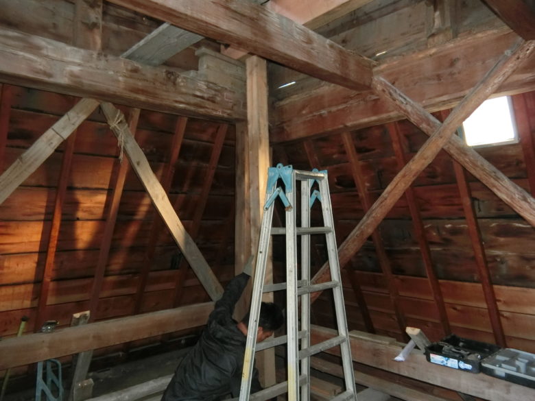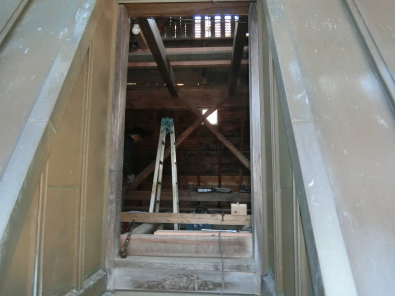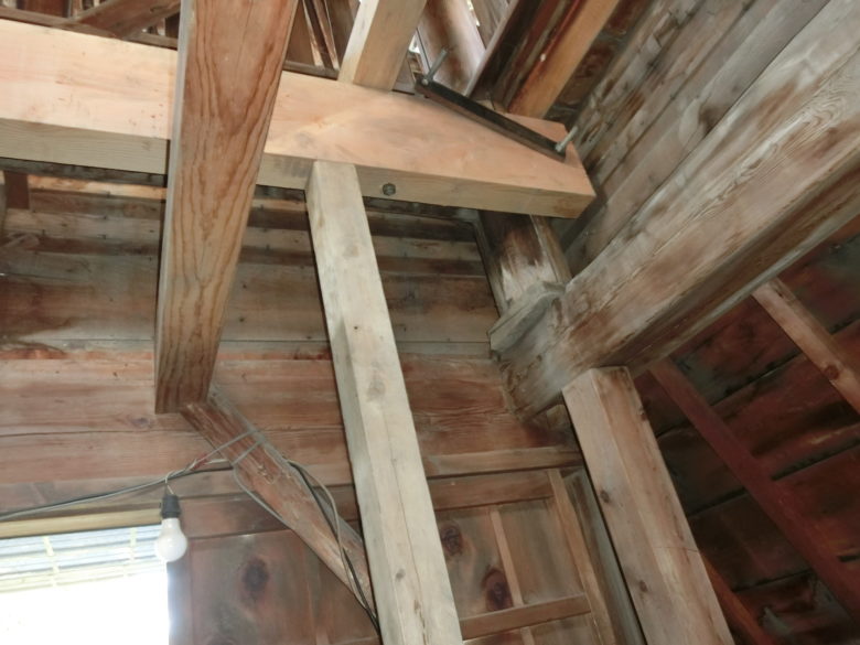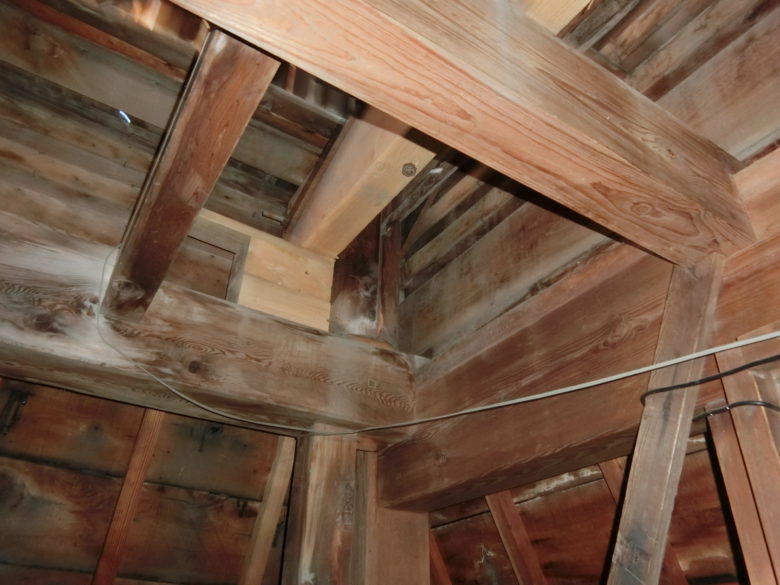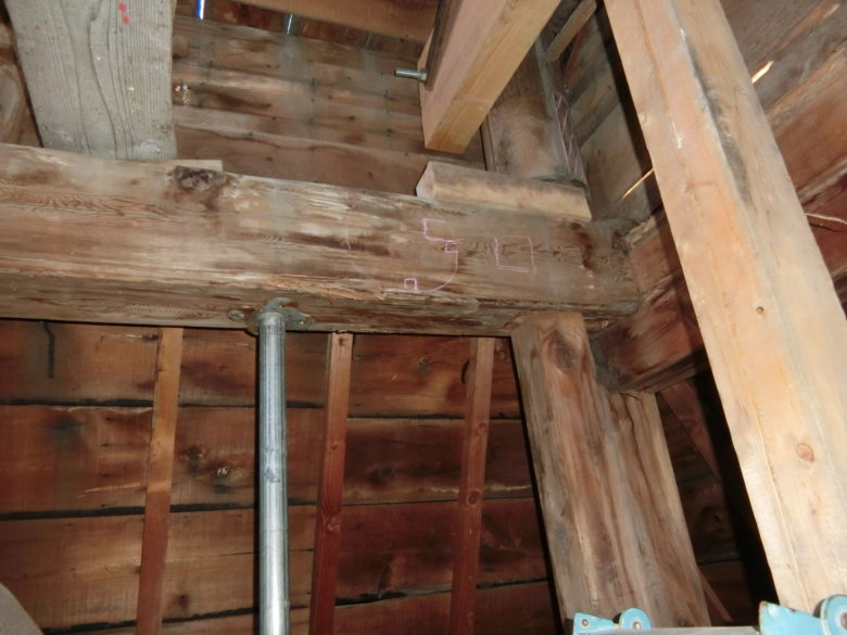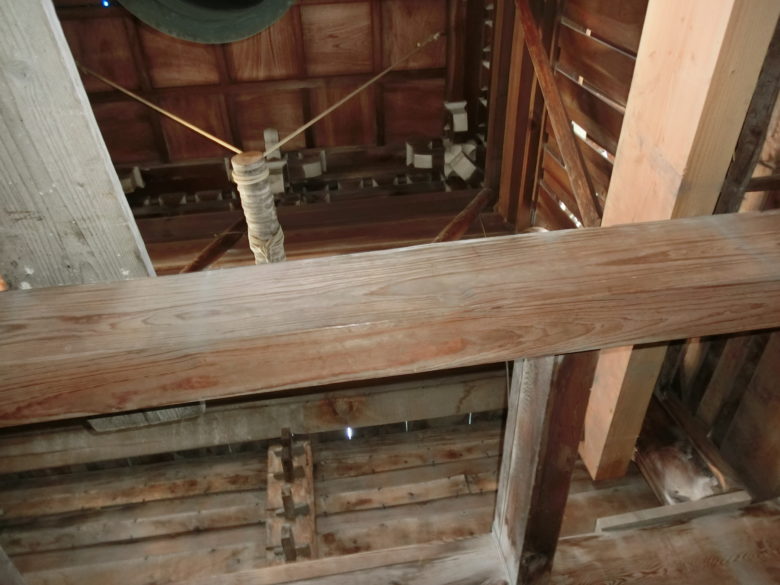 非常に珍しい2階建ての鐘楼で2階を支える大梁部分が腐食