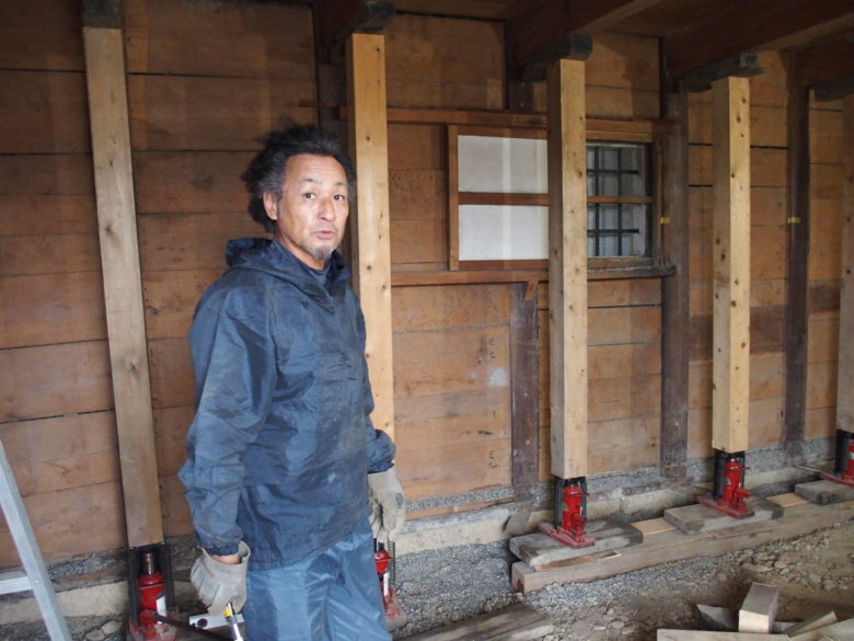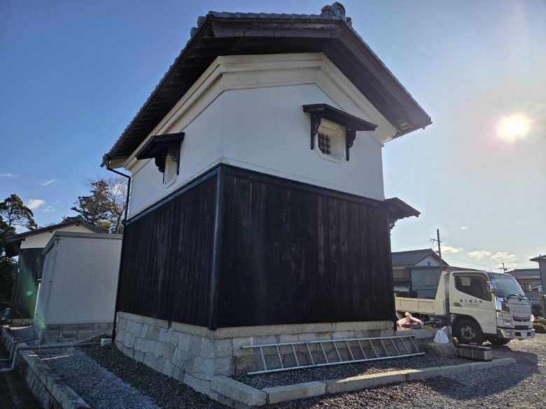 今回の現場は岩文(滋賀県米原市)様の土蔵傾き修正工事を