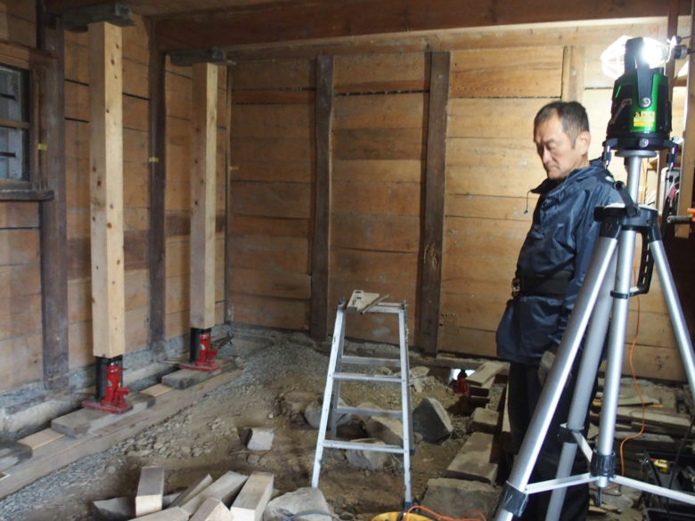 傾き修正・滋賀県長浜市「土蔵の傾き!ジャッキセット!」
