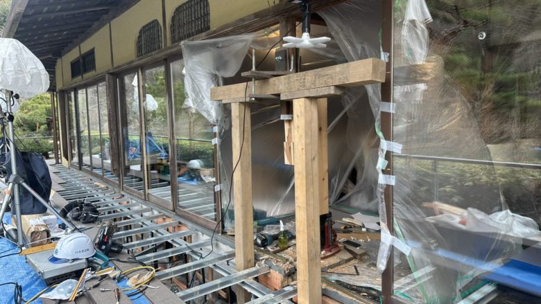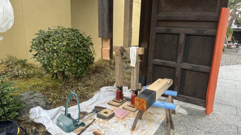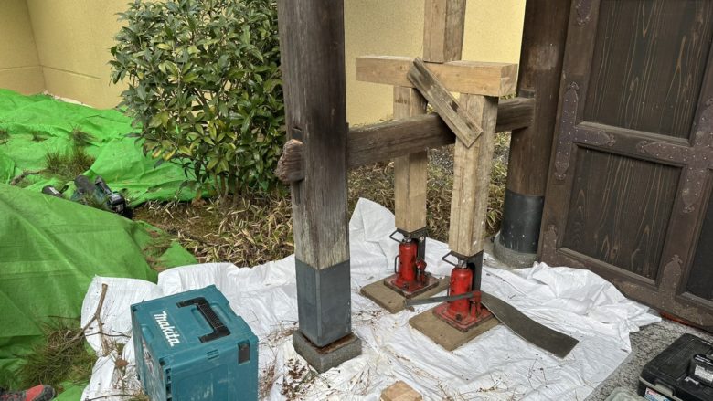 傾き修正・京都市右京区「柱脚切上げ!金輪継ぎ!!」