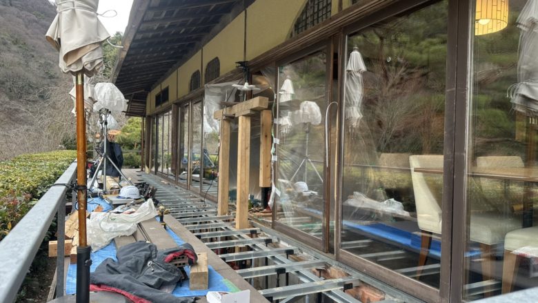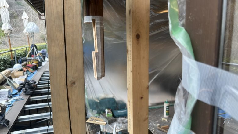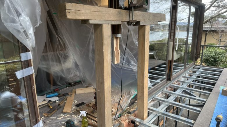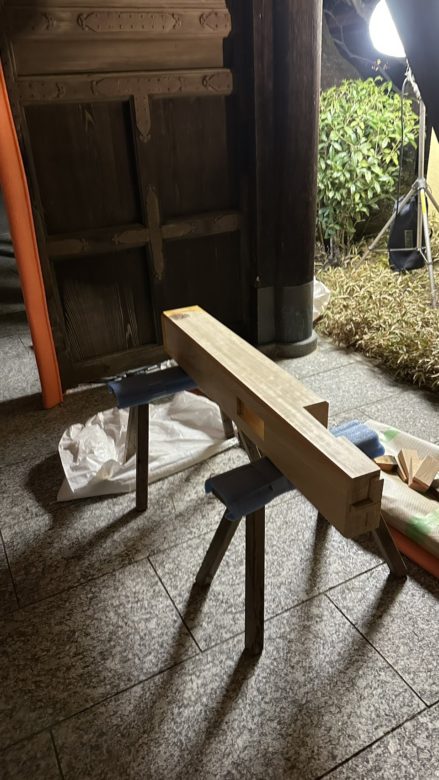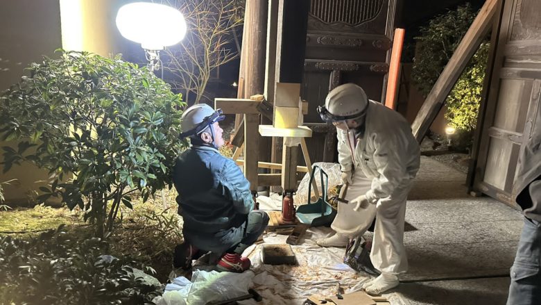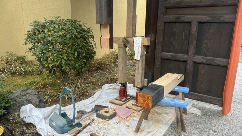 根継ぎの施工をしていきます。三人がかりで2日間の工程。