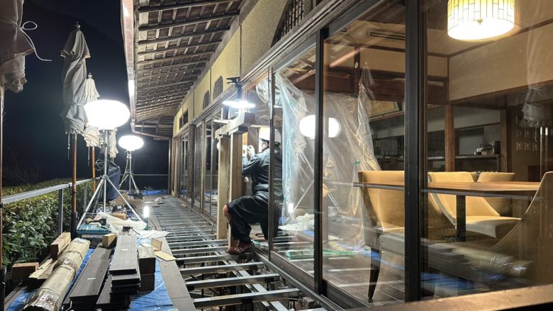 大工さんとの相番工事で我々の根がらみが終わったら、徹夜で