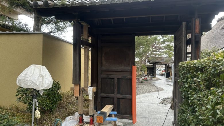 今回は山門の柱脚と店舗棟の部分的柱脚の二カ所を同時施工