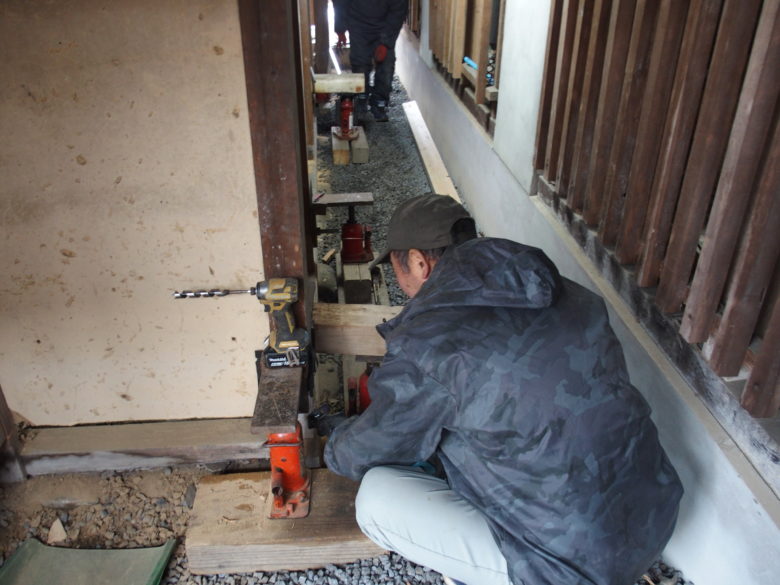 で言っても解かり難いですが、ジャッキで浮かせる工事です。