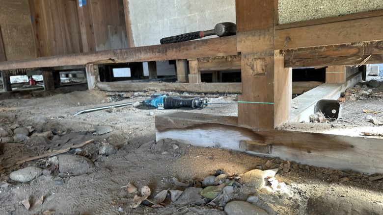 古民家の基礎は玉石基礎が多く、再生する場合には基礎から
