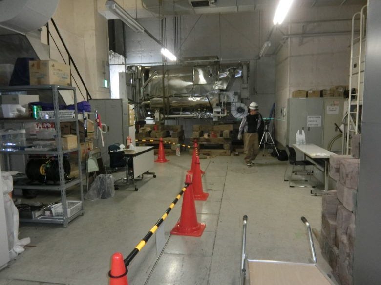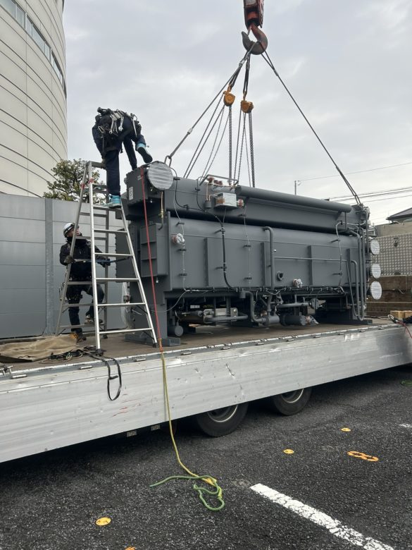 建物場外に搬出します。そして新たな機械を搬入する工事。