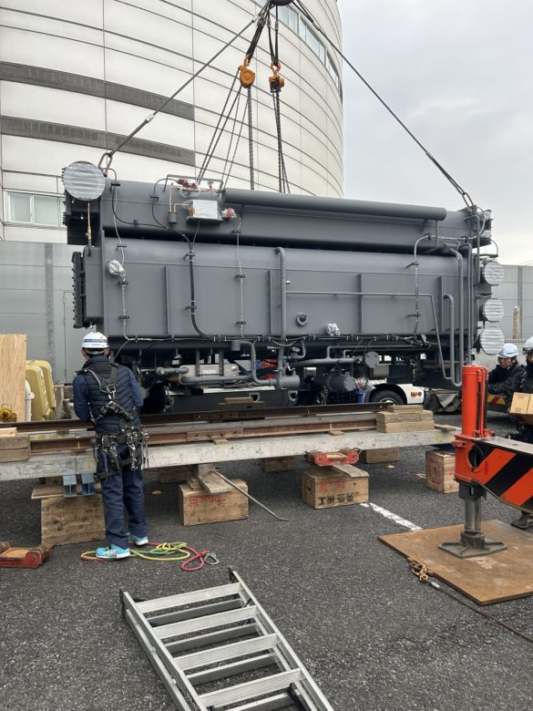 今回の現場は建物の移動じゃなく、機械の曳家移動工事を