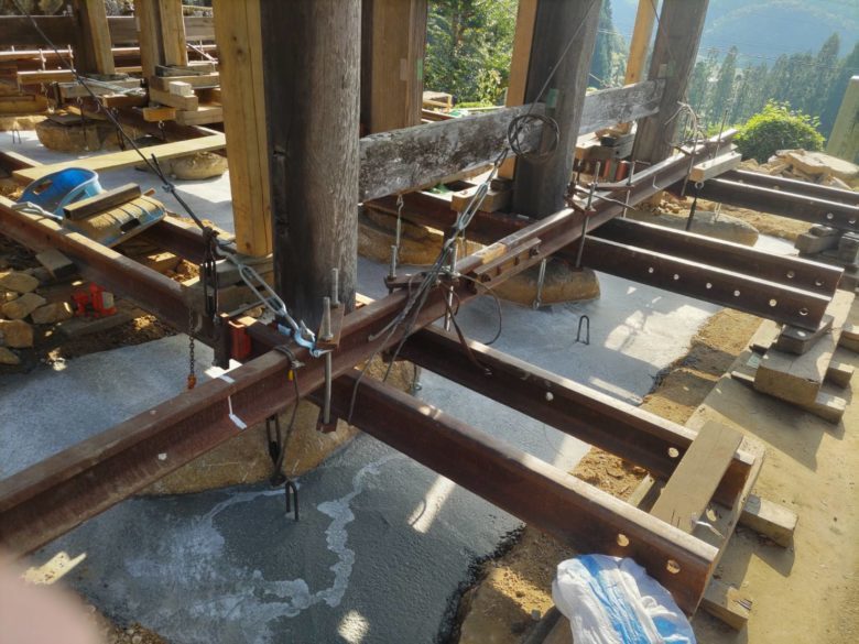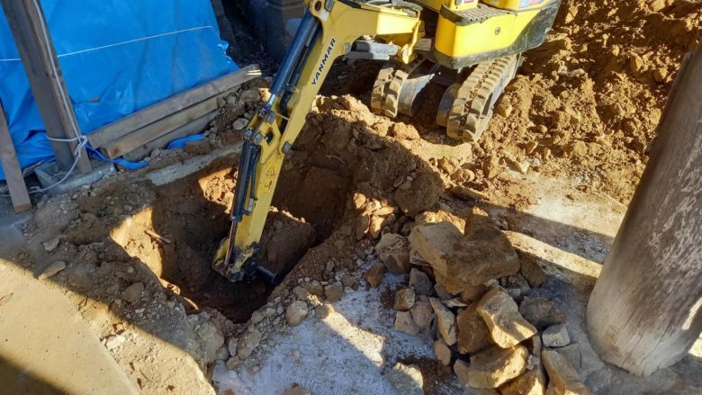 既設の礎石を再利用して基礎補強をする施工方法になり