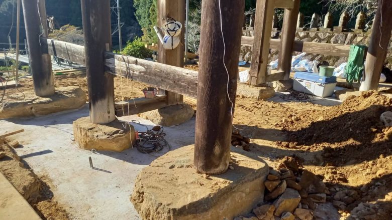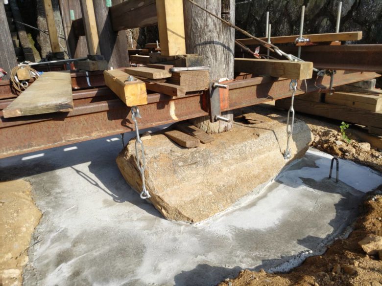 いざ、施工してみるとやはり既設礎石を再利用しただけあって