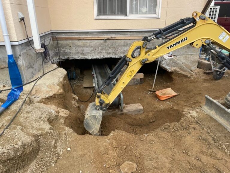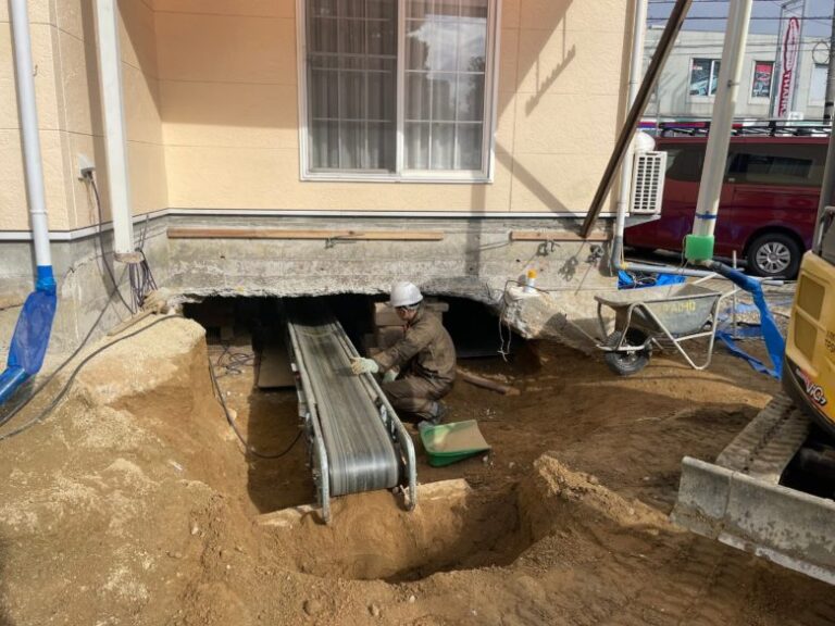 愛知県豊田市「基礎共曳家!家の下掘り始めました!」 本日はマルス建設株式会社(愛知県豊田市)様とのコラボ 現場、基礎共曳家移動工事が始まりま…