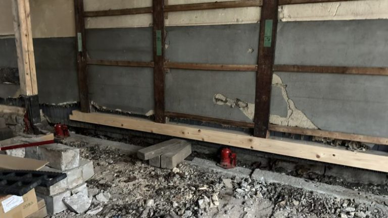 傾き修正・京都市南区「基礎から!ジャッキで傾き修正!」 本日は白木建設株式会社(岐阜県本巣市)様の現場で天満宮本殿 の外周り擁壁を油圧ジャッ…